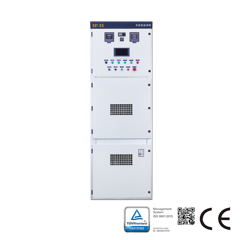 HVS series High Voltage Soft Starter is a new type of soft starting device developed by Sikes Electric. This device is a high-performance, multifunctional, and highly safe intelligent equipment designed and developed using advanced control theories. It is mainly used for the control and protection of high voltage motors during starting, operation, and stopping. HVS series High voltage soft starter is built around a high-speed digital signal processor, incorporating modern advanced control methods and various dynamic and static protection measures to achieve high performance. The device can dynamically, in real time, and effectively limit the motor’s starting current within a preset value, preventing voltage dips in the power grid caused by excessive starting current. It ensures smooth starting, reduces the required capacity of power transformation and distribution equipment, and saves project investment costs. The device provides comprehensive, reliable, and accurate motor protection functions, including over current, overload, current imbalance, phase loss, and thyristor faults.